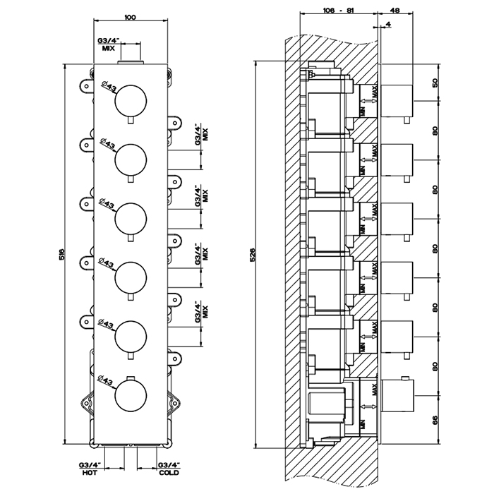 Смеситель Gessi Gessi316 54520#707 для душа термостат, черный хром браш pvd