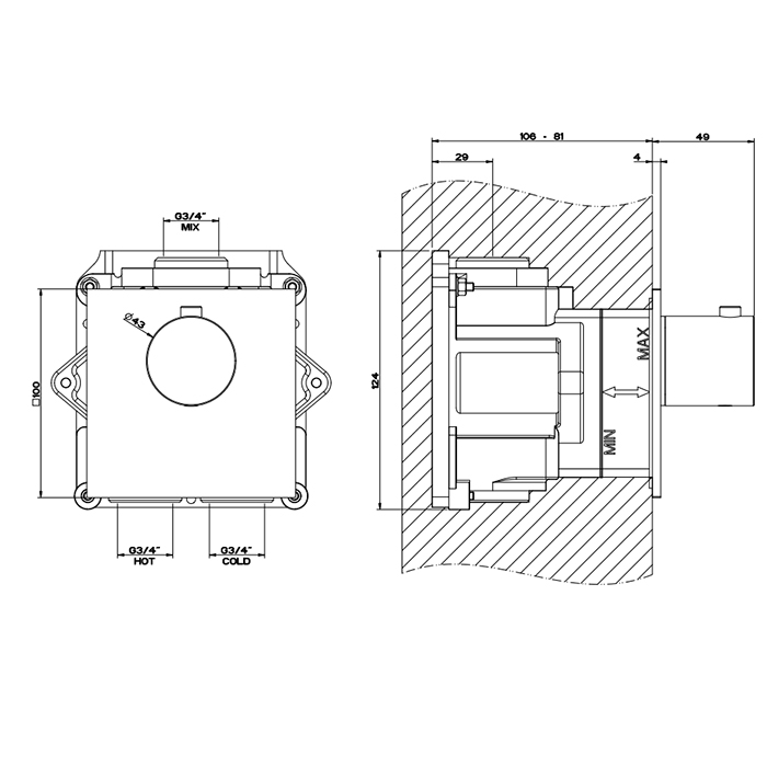 Смеситель Gessi Gessi316 54554#239 для душа термостат, нержавеющая сталь браш