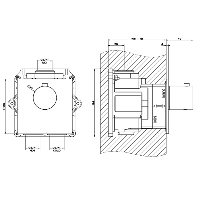 Смеситель Gessi Gessi316 54554#707 для душа термостат, черный хром браш pvd