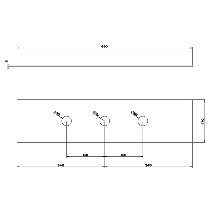 Пластина Gessi Gessi316 54593#707 на 3 отверстия для монтажного бокса, черный хром браш pvd
