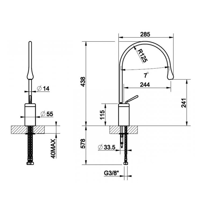 Смеситель Gessi Goccia 33605#299 для раковины, черный матовый