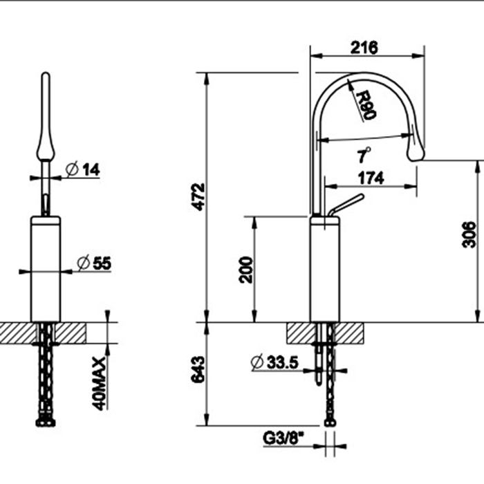 Смеситель Gessi Goccia 33608#299 для раковины, черный матовый