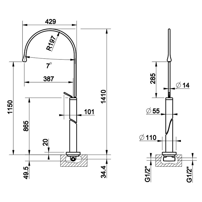 Смеситель Gessi Goccia 33628#147 для раковины напольный, хром браш