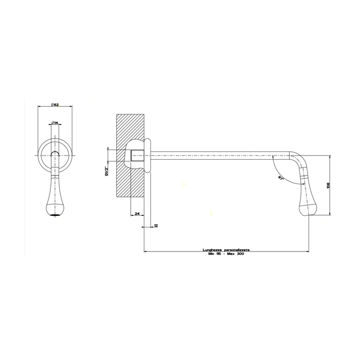 Излив Gessi Goccia 33723#299 настенный черный матовый