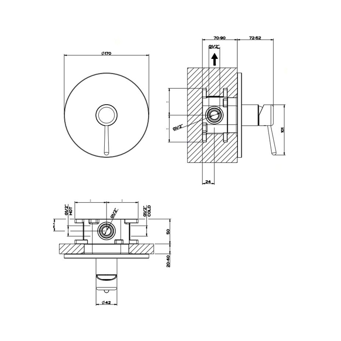 Смеситель Gessi Goccia 44676#299 для душа, черный матовый