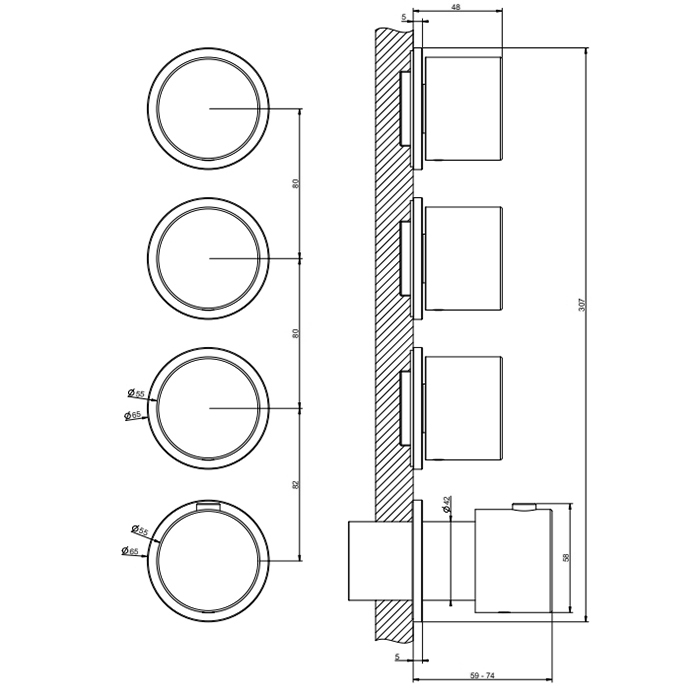 Смеситель Gessi Habito 63436#031 для душа термостат с переключателем на 3 потока, хром