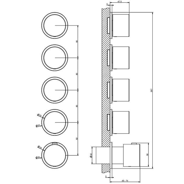 Смеситель Gessi Habito 63438#706 для душа термостат, черный хром глянец pvd