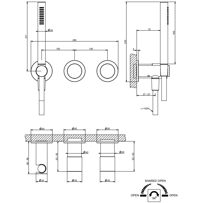 Смеситель Gessi Habito 70038#727 для душа, латунь браш pvd