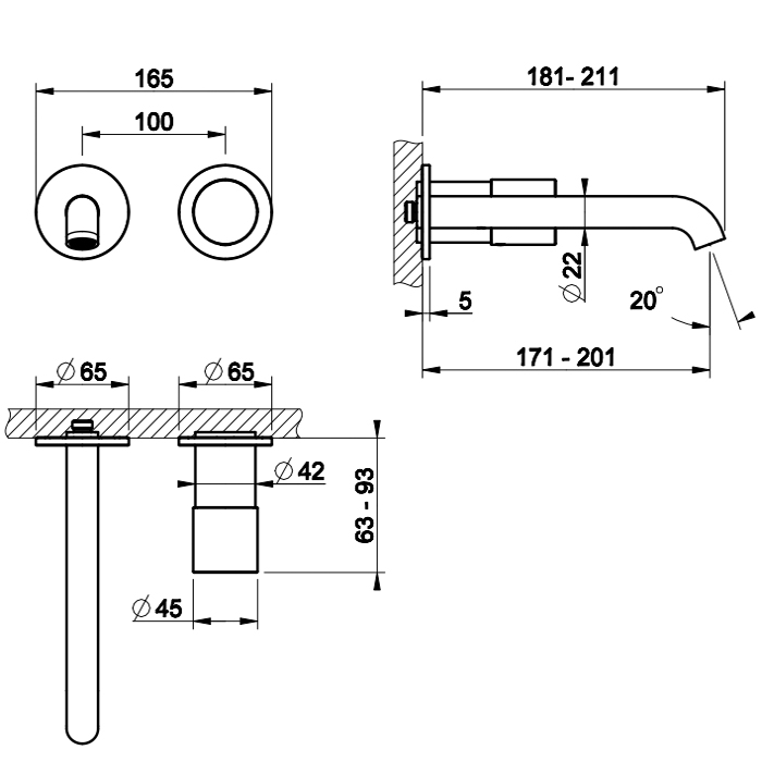 Смеситель Gessi Habito 70088#707 для раковины, черный хром браш pvd