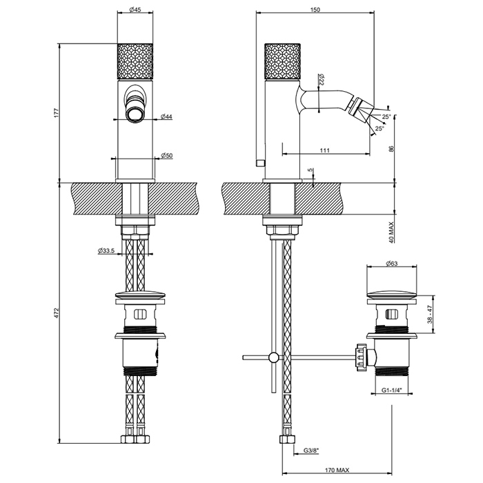 Смеситель Gessi Habito 70107#031 для биде с донным клапаном, хром