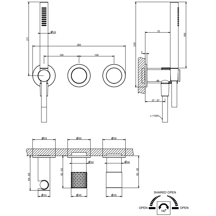 Смеситель Gessi Habito 70138#707 для душа с переключателем на 2 потока, черный хром браш pvd