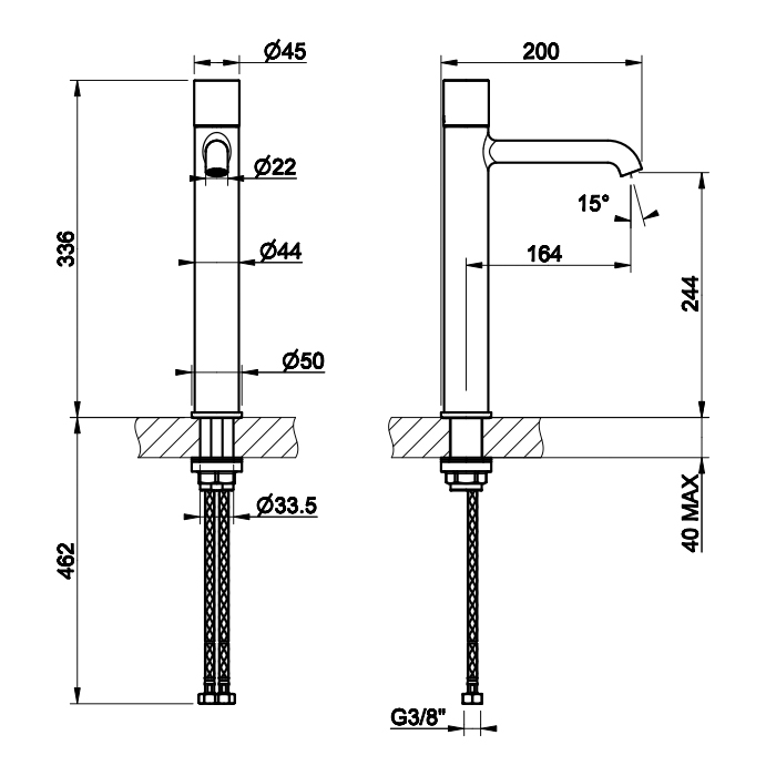 Смеситель Gessi Habito 70304#707 для раковины, черный хром браш pvd