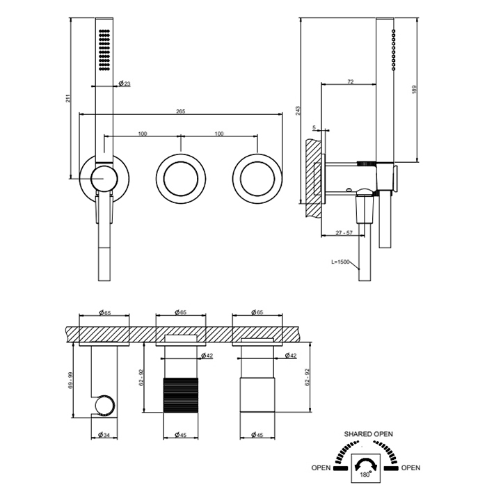 Смеситель Gessi Habito 70338#031 для душа с переключателем на 2 потока, хром