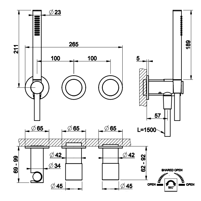 Смеситель Gessi Habito 70338#707 для душа с переключателем на 2 потока, черный хром браш pvd