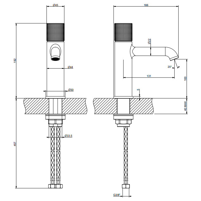 Смеситель Gessi Habito 70402#149 для раковины с донным клапаном, никель браш