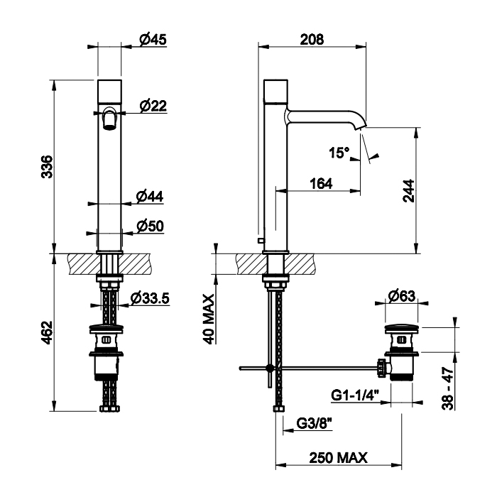 Смеситель Gessi Habito 70403#707 для раковины с донным клапаном, черный хром браш pvd
