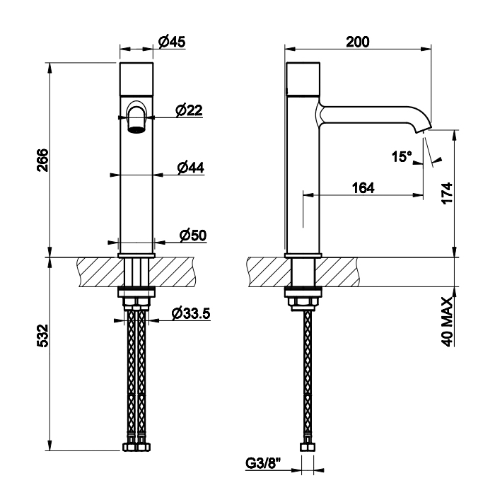 Смеситель Gessi Habito 70406#708 для раковины, медь браш pvd