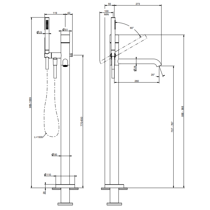 Смеситель Gessi Habito 70428#299 напольный для ванны, черный матовый