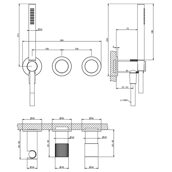 Смеситель Gessi Habito 70438#706 для ванны с душем, черный хром глянец pvd