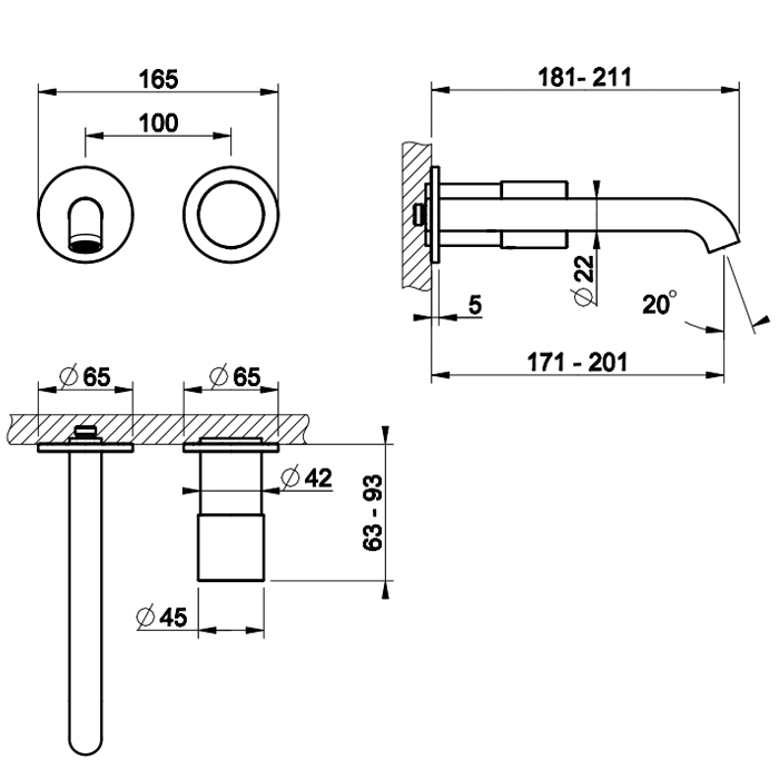 Смеситель Gessi Habito 70488#727 для раковины, латунь браш pvd
