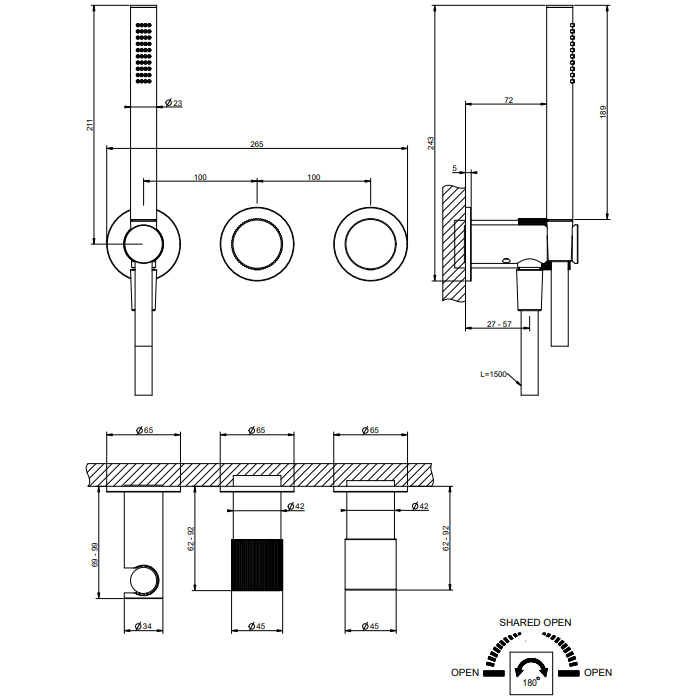 Смеситель Gessi Habito 70538#707 для душа, черный хром браш pvd