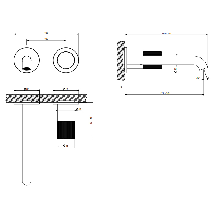Смеситель Gessi Habito 70588#707 для раковины, черный хром браш pvd