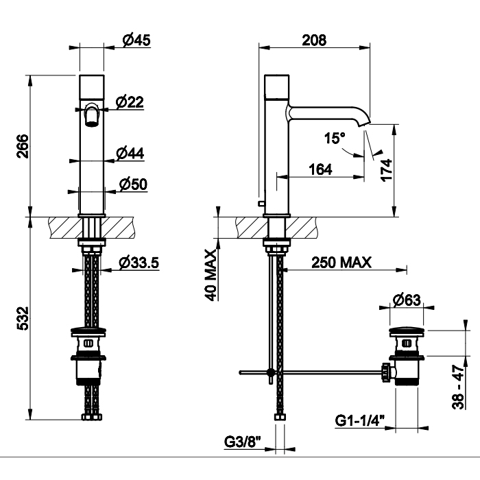 Смеситель Gessi Habito 70605#707 для раковины, черный хром браш pvd