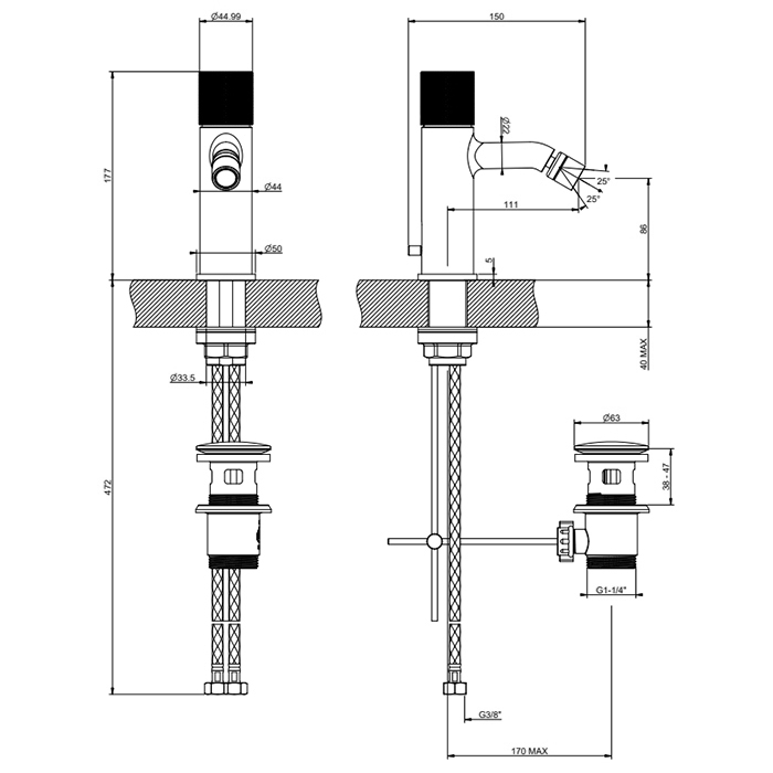 Смеситель Gessi Habito 70607#031 для биде с донным клапаном, хром