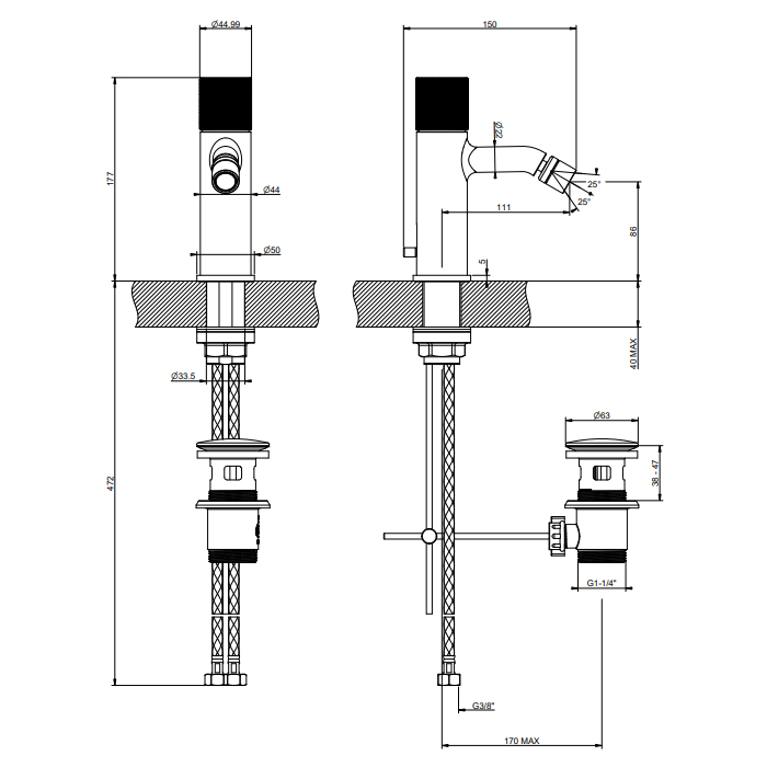 Смеситель Gessi Habito 70607#726 для биде с донным клапаном, бронза браш pvd