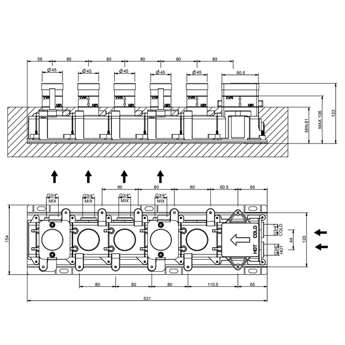 Скрытая часть смесителя Gessi Hi-Fi 63015#031, термостат