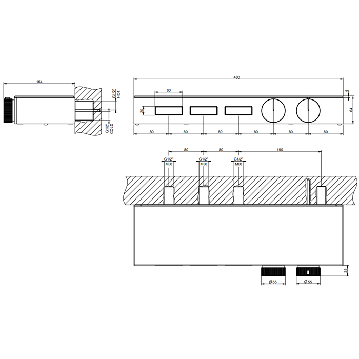 Смеситель Gessi Hi-Fi 63024#707 для душа термостат с переключателем на 3 потока, черный хром браш pvd