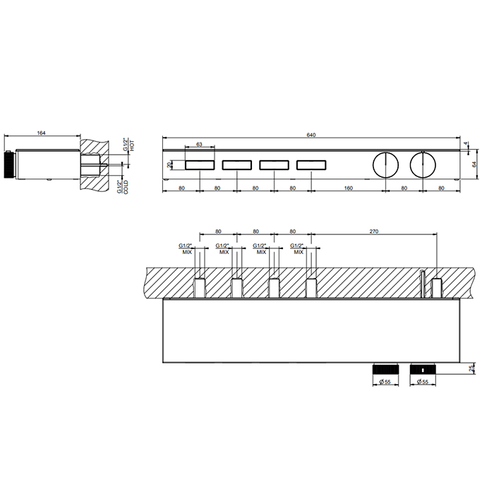Смеситель Gessi Hi-Fi 63026#707 для душа термостат, черный хром браш pvd