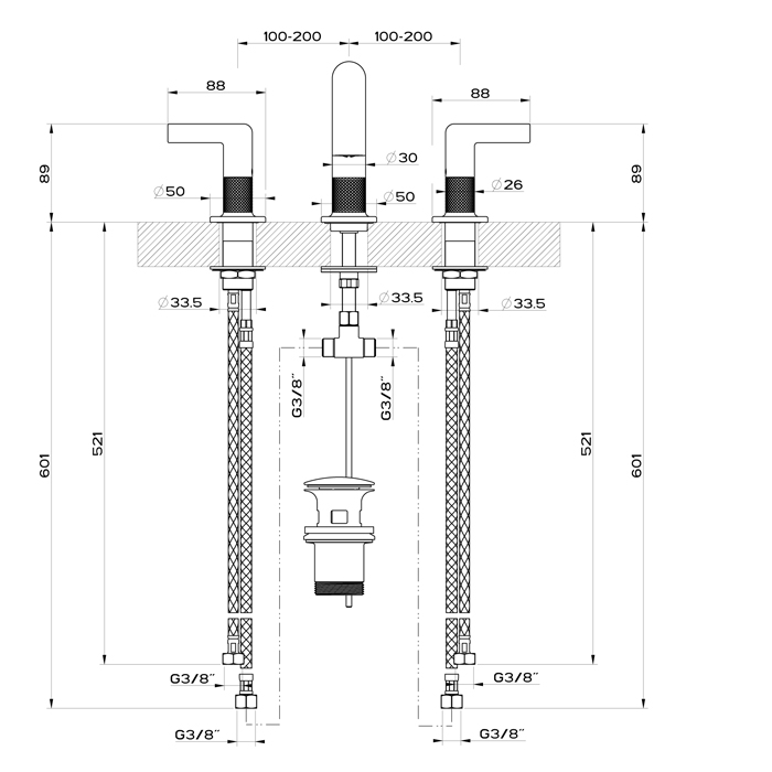 Смеситель Gessi Inciso 58011#299 для раковины с донным клапаном, черный матовый
