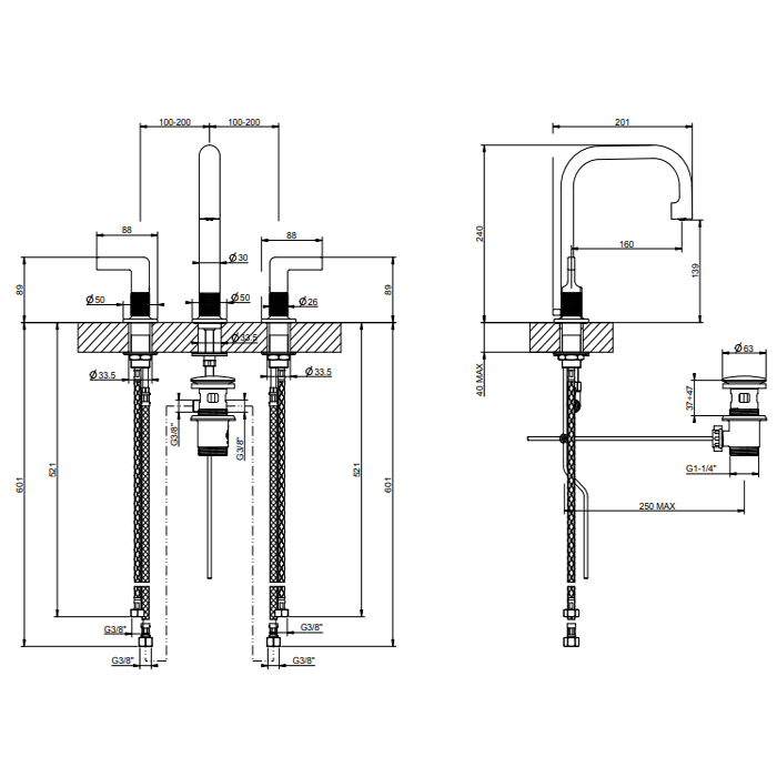 Смеситель Gessi Inciso 58013#246 для раковины с донным клапаном, золото глянец pvd