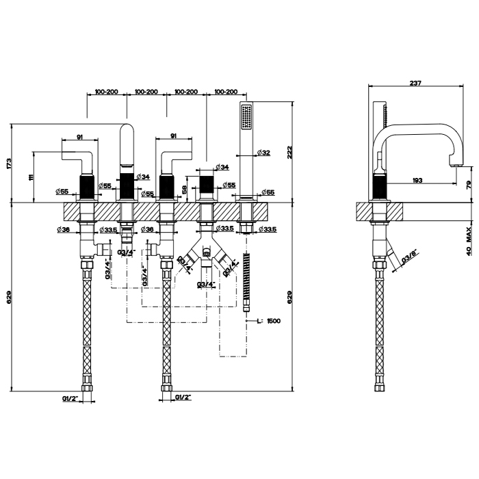 Смеситель Gessi Inciso 58040#246 для ванны с душем, золото глянец pvd