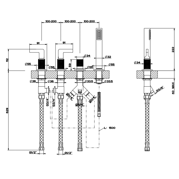 Смеситель Gessi Inciso 58043#031 для ванны с душем, хром