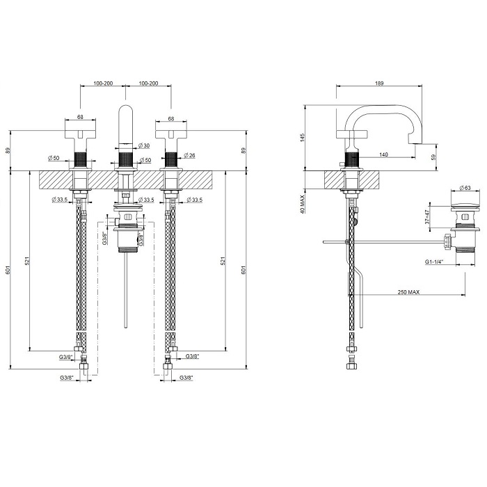Смеситель Gessi Inciso 58111#149 для раковины с донным клапаном, никель браш