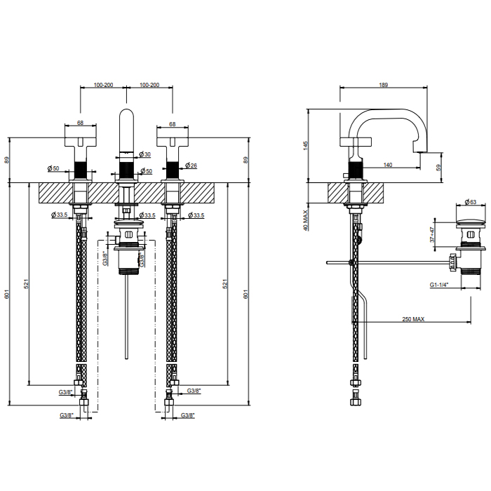 Смеситель Gessi Inciso 58111#246 для раковины с донным клапаном, золото глянец pvd