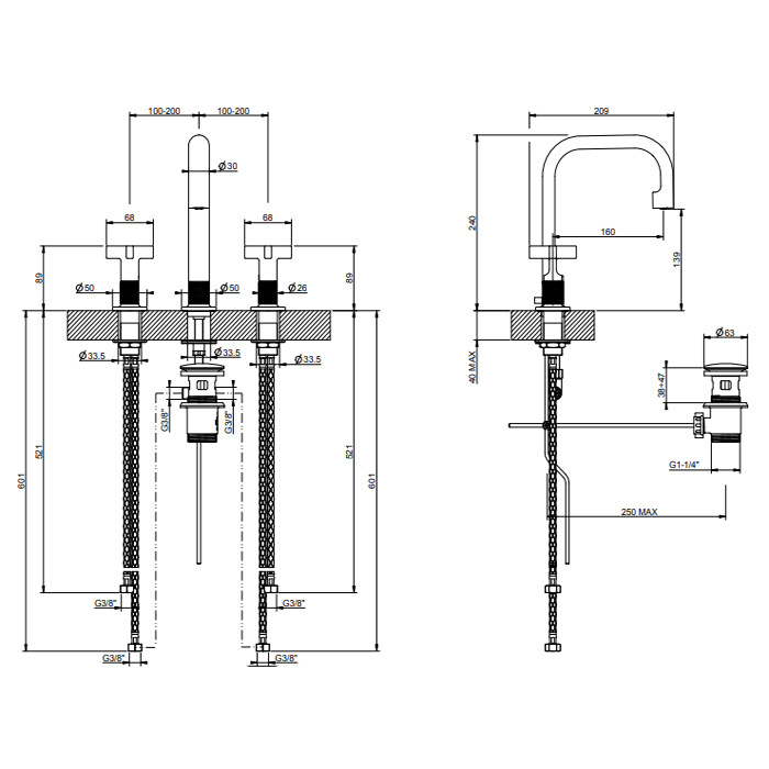 Смеситель Gessi Inciso 58113#246 для раковины с донным клапаном, золото глянец pvd