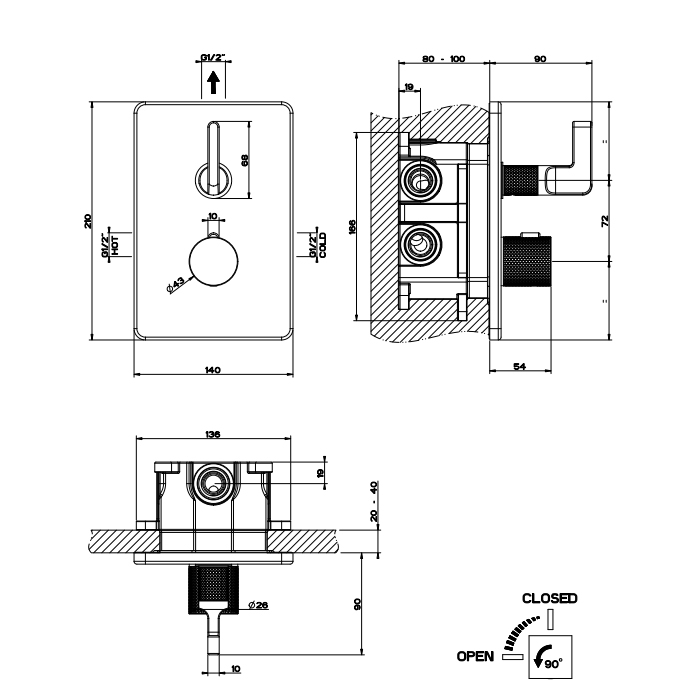 Смеситель Gessi Inciso 58132#246 для душа термостат, золото глянец pvd