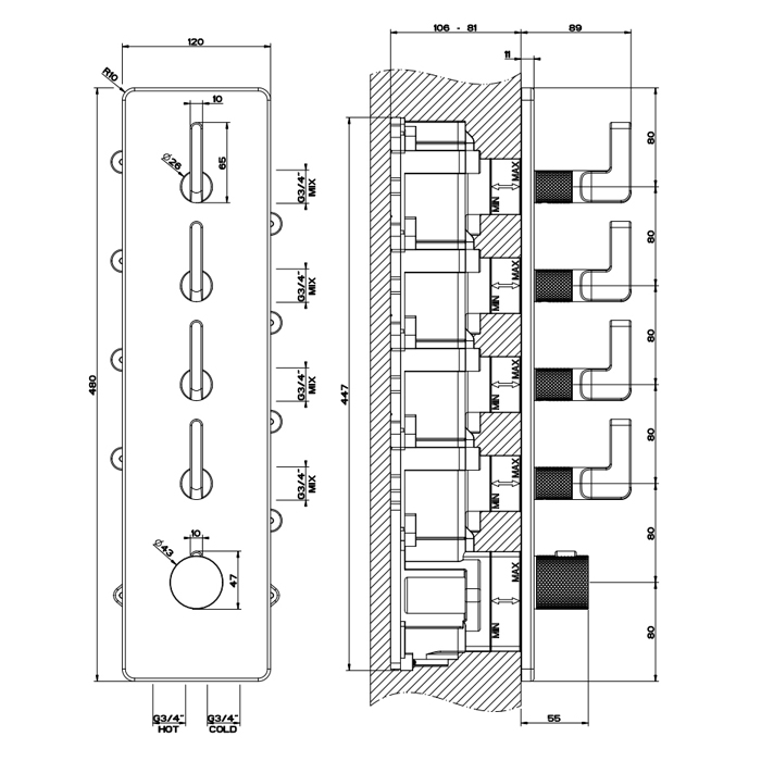 Смеситель Gessi Inciso 58208#299 для душа термостат, черный матовый