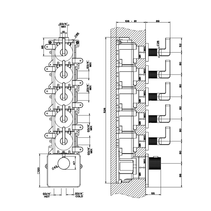 Смеситель Gessi Inciso 58220#299 для душа термостат, черный матовый