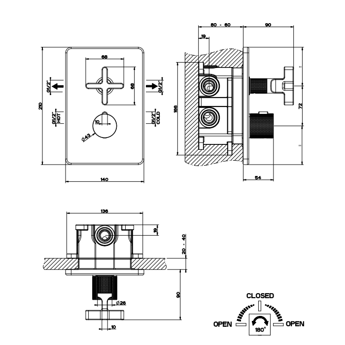 Смеситель Gessi Inciso 58234#246 для душа термостат, золото глянец pvd
