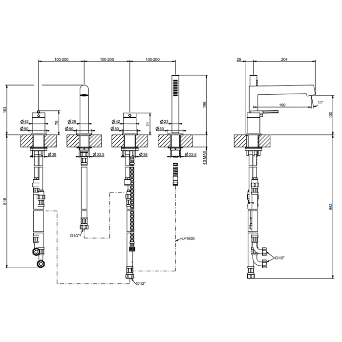 Смеситель Gessi Ingranaggio 63537#707 на борт ванны, черный хром браш pvd
