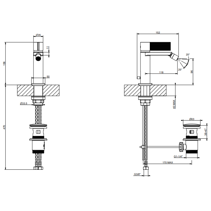 Смеситель Gessi Inverso Rigato 73507#726 для биде с донным клапаном, бронза браш pvd