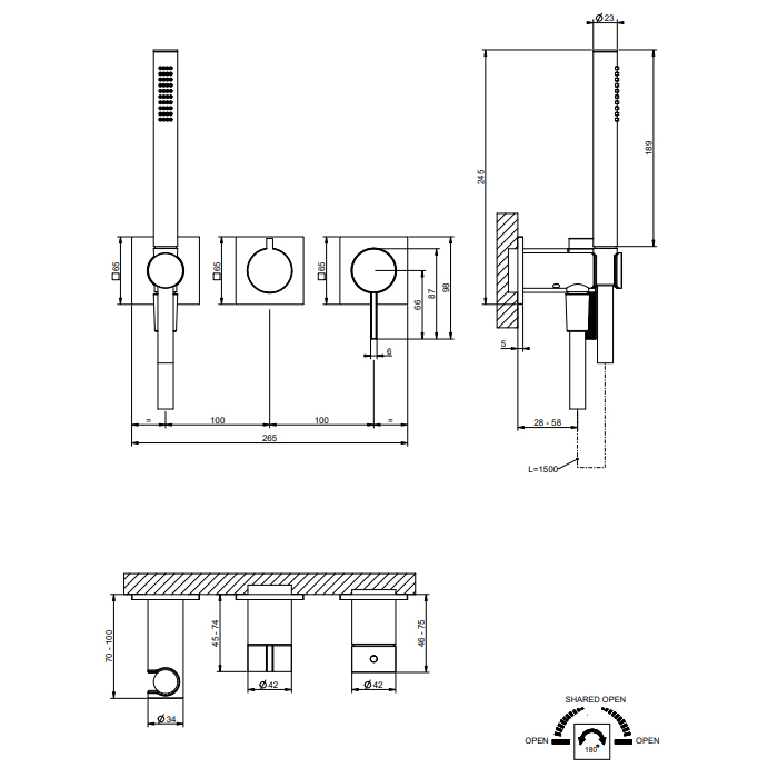 Смеситель Gessi Inverso Rigato 73536#727 для душа, латунь браш pvd