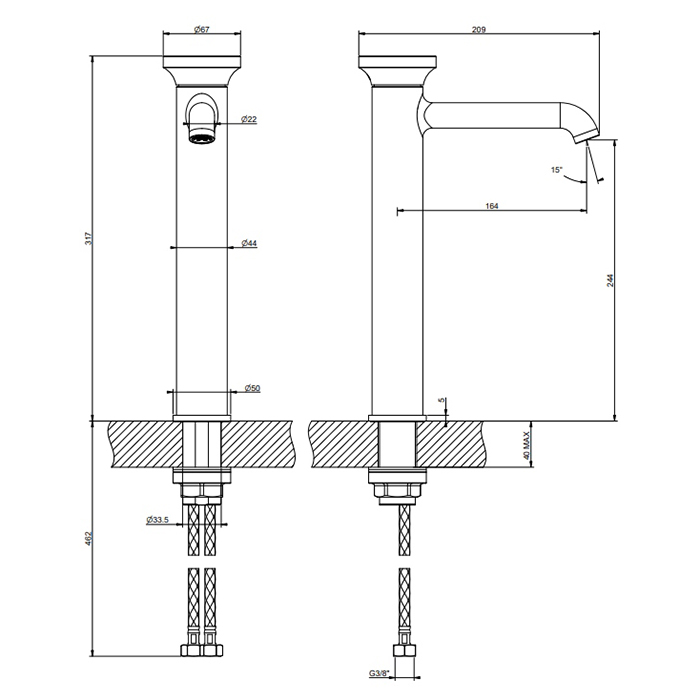 Смеситель Gessi Origini 66004#707 для раковины, черный хром браш pvd