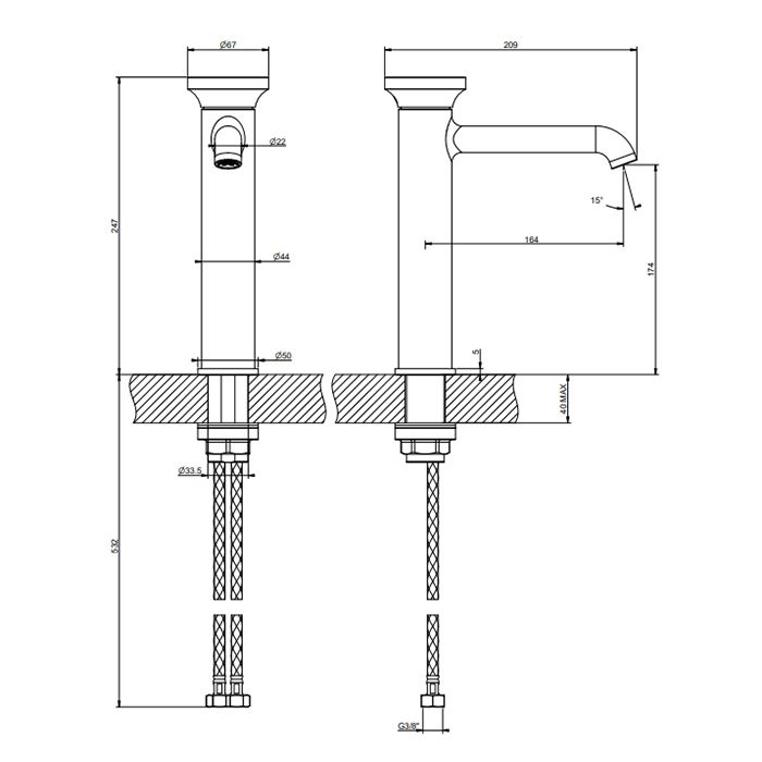 Смеситель Gessi Origini 66006#277 для раковины, glossy ocra (охра глянец)