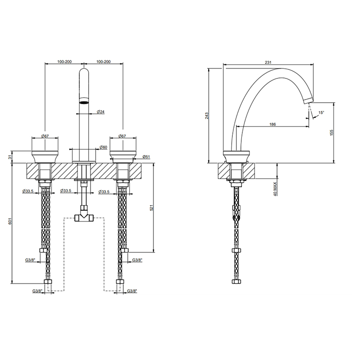 Смеситель Gessi Origini 66014#708 для раковины, медь браш pvd