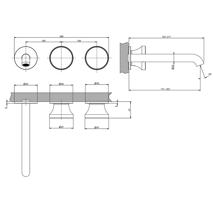 Смеситель Gessi Origini 66090#726 для раковины с изливом, бронза браш pvd